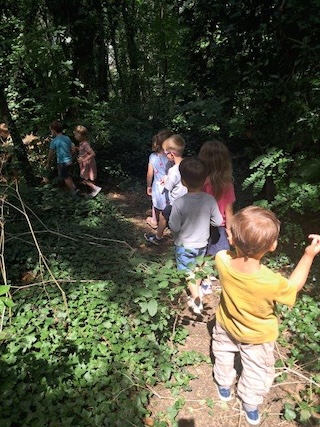 Unser Spaziergang durch den Wald lädt uns zum Hollerpflücken ein.