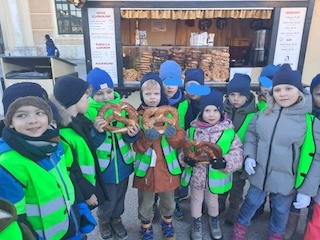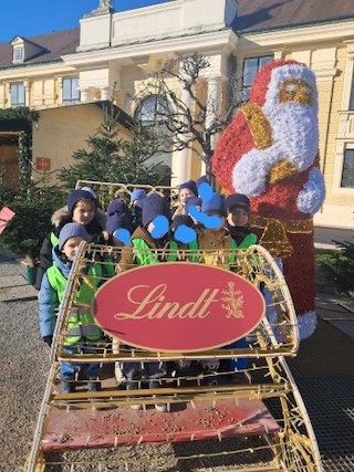 Wir besuchen den Weihnachtsmarkt in Schönbrunn bei Sonnenschein und tiefblauem Himmel.