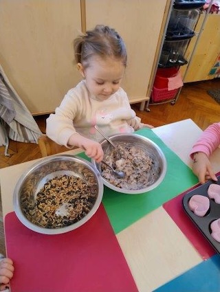 Wir denken an die Vögel im Schnee und helfen ihnen mit selbstgemachten Futterglocken.