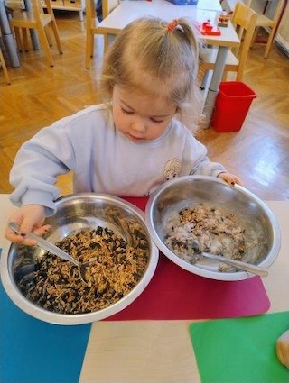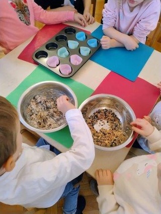 Wir unterstützen die Vögel in unserem Garten bei der schwierigen Futtersuche im Winter und stellen selbst Futterringe zum Aufhängen her.