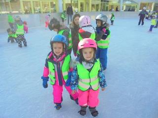 Eislaufen mit unseren Freunden macht uns großen Spaß!