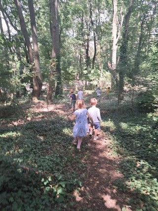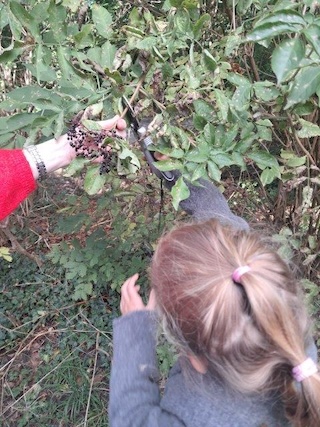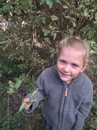 Unser Spaziergang durch den Wald lädt uns zum Hollerpflücken ein.