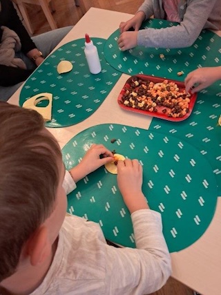 Wir freuen uns auf das Erntedankfest und gestalten fleißig Herbstdeko für unsere Gruppe.