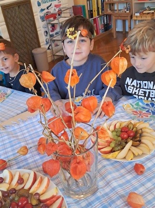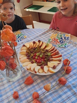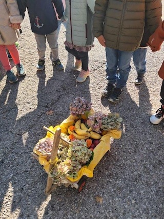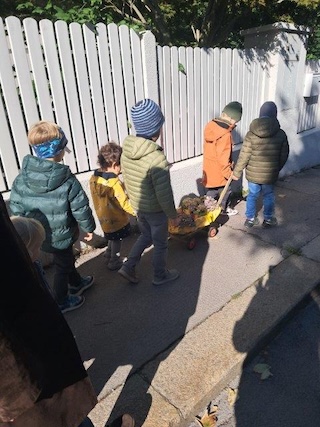 Sensibel für die Gaben der Natur erleben die Kinder in der Gemeinschaft ein stimmungsvolles Erntedankfest mit dem Umzug mit dem geschmückten Erntedankwagen.