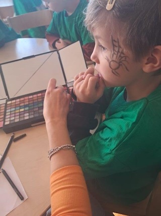 Mit gemalten Spinnen auf den Wangen ging es an unsere Tänze, lustigen Lieder und verflixten Spiele.