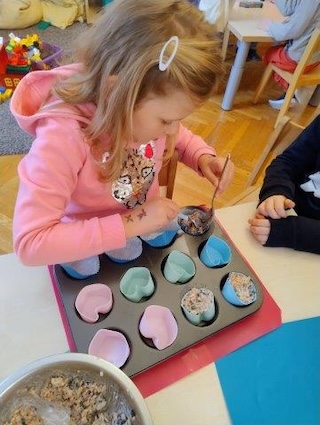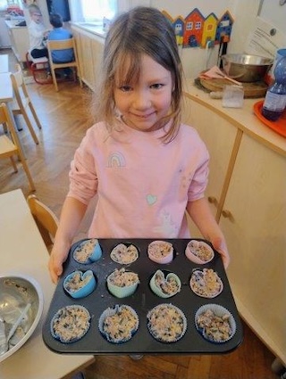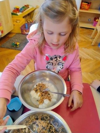 Wir denken an die Vögel im Schnee und helfen ihnen mit selbstgemachten Futterglocken.