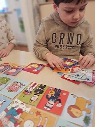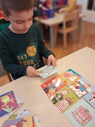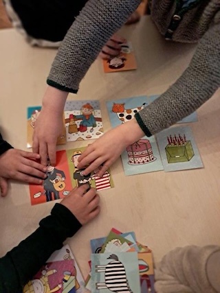 Handlungsbegleitendes Sprechen und aktives Zuhören erweitern den Wortschatz und fördern den Dialog.