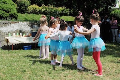 Bewegungsabläufe bis zu kleinen Gruppentänzen bei. Hier