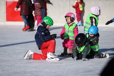 Eislaufen, das die kleinen und großen Kinder überraschend
